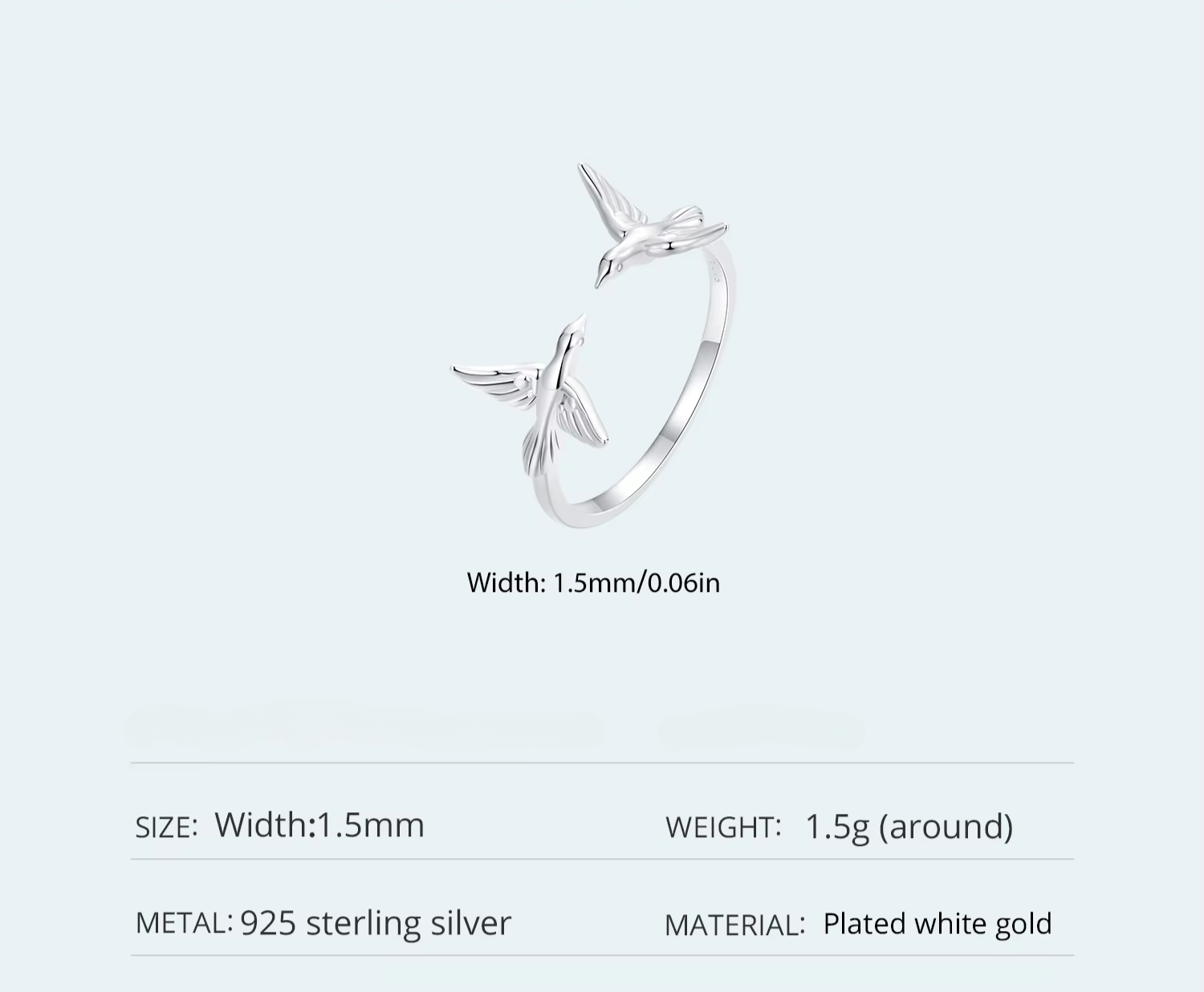 Celebra la belleza de esta ave emblemática con este diseño de anillo abierto y original. Elaborado en baño premium de Plata Esterlina 925 genuina, presenta un delicado diseño de Colibrí