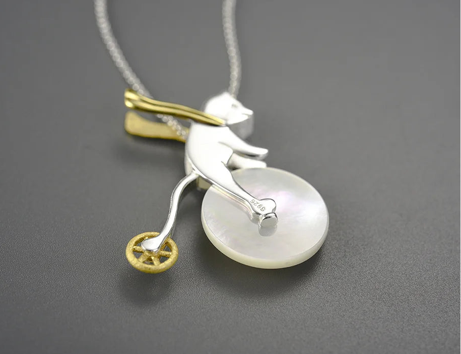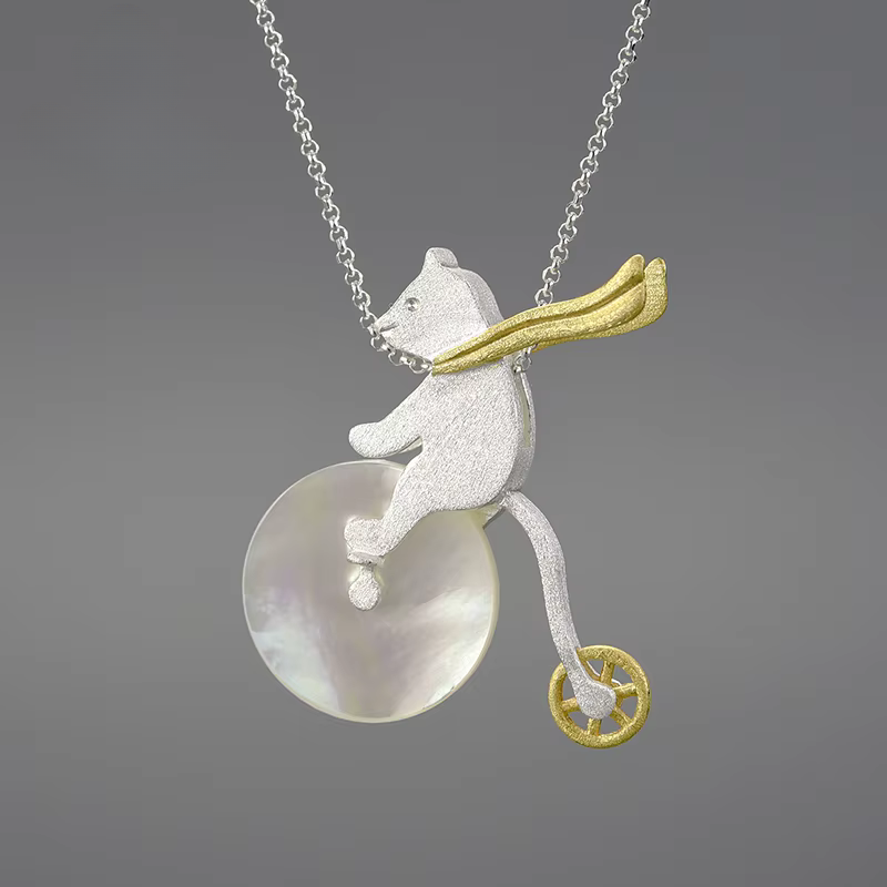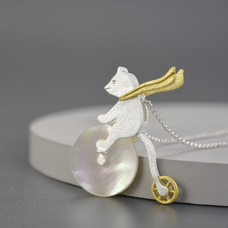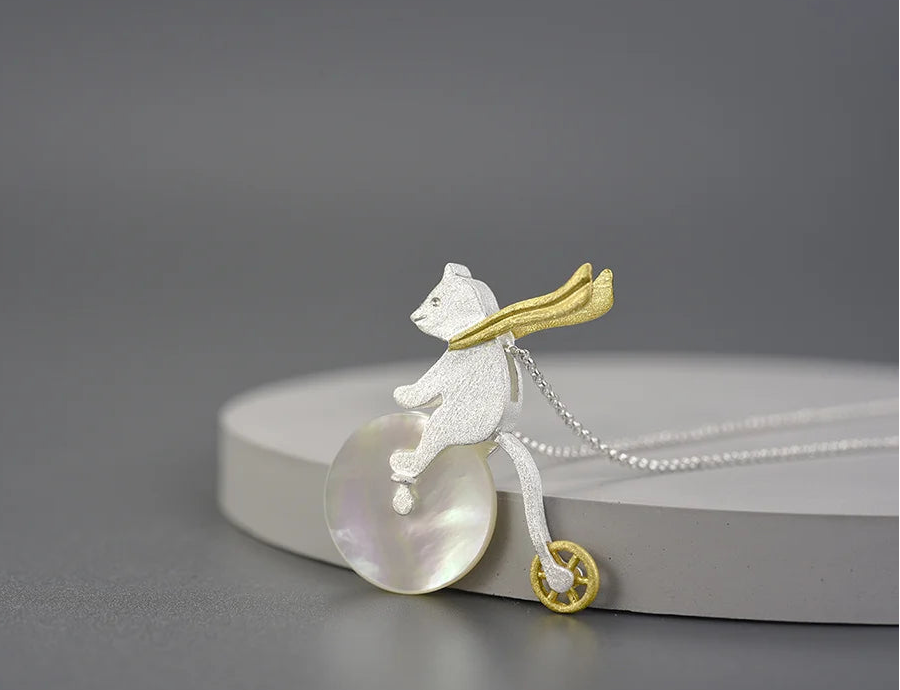 Colgante Oso en Bicicleta Hecho a Mano en Plata 925